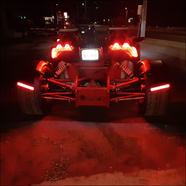 OPTIONAL LED TAILLIGHTS –At minimum, red reflectors are required on outside rear corners of all motor vehiclesĀ Polaris slingshots had these , but when widening your rear end, why not go one step further by adding outside cornerĀ taillights.BE SAFE, BE SEEN !Ā