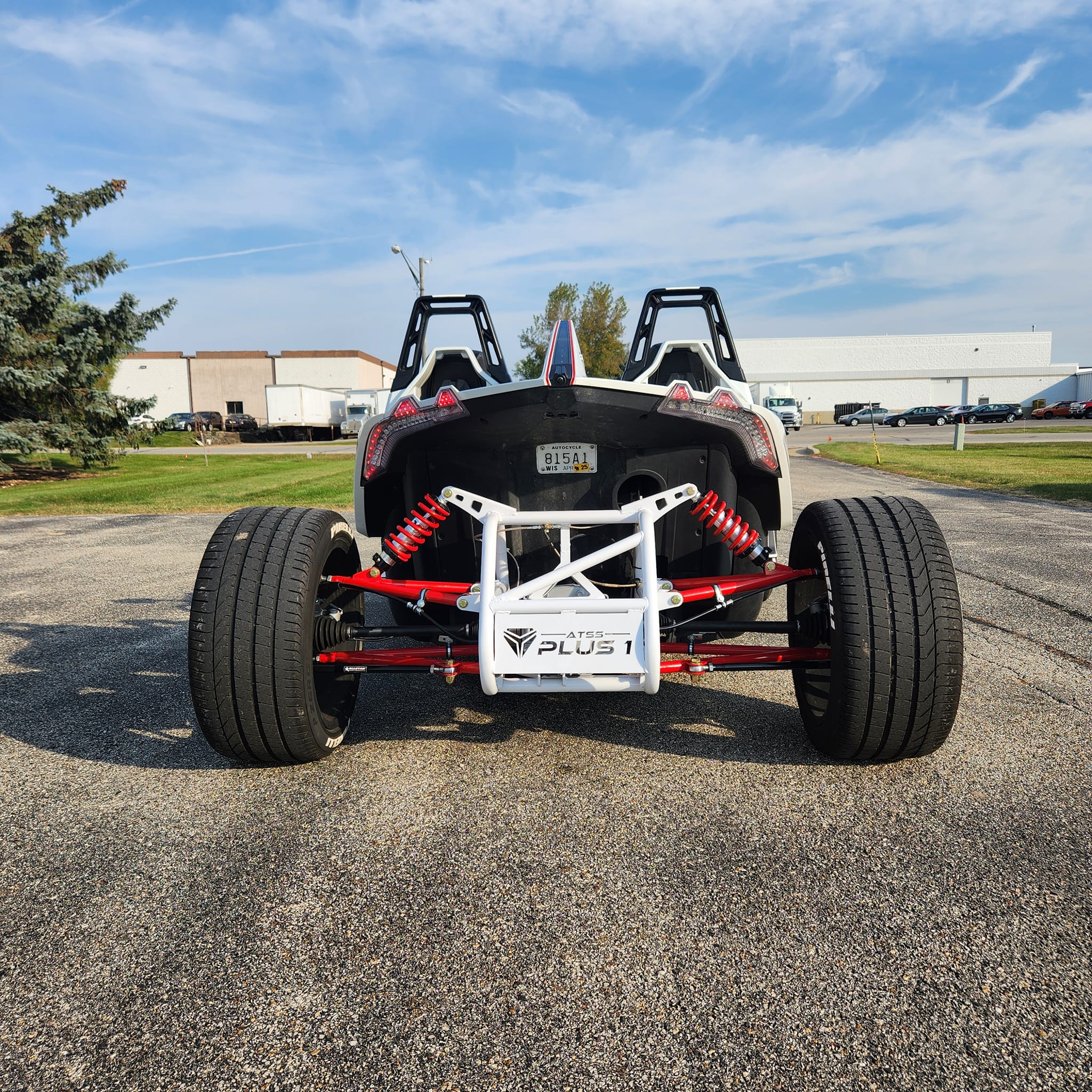 The Plus 1-Ā 4 wheelĀ Conversion kit by ATSS for your Polaris SlingshotĀ featuresĀ the newest chassis design available for your 4 wheel, quad conversion, With the most options for your Polaris Slingshot ! Featuring the unrivaled success of theĀ 5th Gen Camaro LSD. Posi-Trac differentials. These lightweight G.M. rear ends provide the utmost in torque transfer technology to deliver the most aggressive cornering, handling, and accelerating capabilities that have landed the new Camaros the highest award winning rankings to date. These handling and traction improvements provide sensational improvements on the abilities of your SlingshotĀ as the handling capabilities go from good to excellent. Providing a Slingshot experience few will experience, for THOSE WHO DARE !Ā